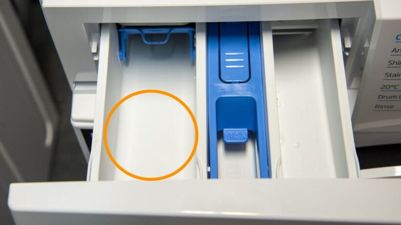 - Softener compartment – usually marked with a flower icon; never put powder here.